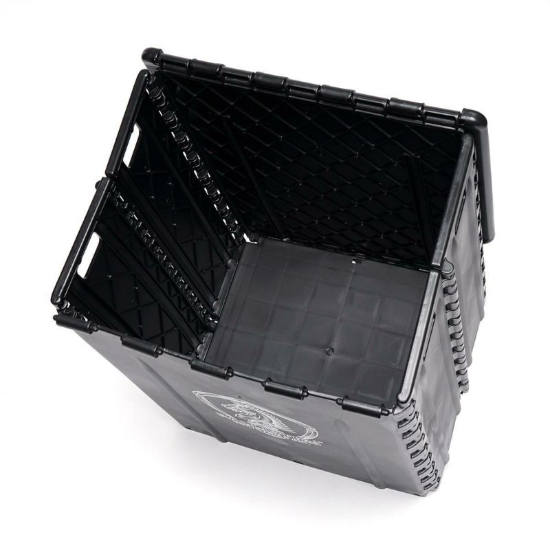 スツール(椅子)にもなる折り畳みコンテナです。 ブランドロゴを3か所にプリント。 薪を入れたり袋を掛けてゴミ箱にしたりお菓子やパンなど保冷が必要ないもののパントリーボックスとしてもお勧めです。 ※着席時の静止耐荷重は80kg程ですが、上に立ったり踏み台代わりのご使用はおやめ下さい。 又、各パーツがきちんと嵌った状態でご使用いただかないと破損する恐れがございますのでご注意ください。