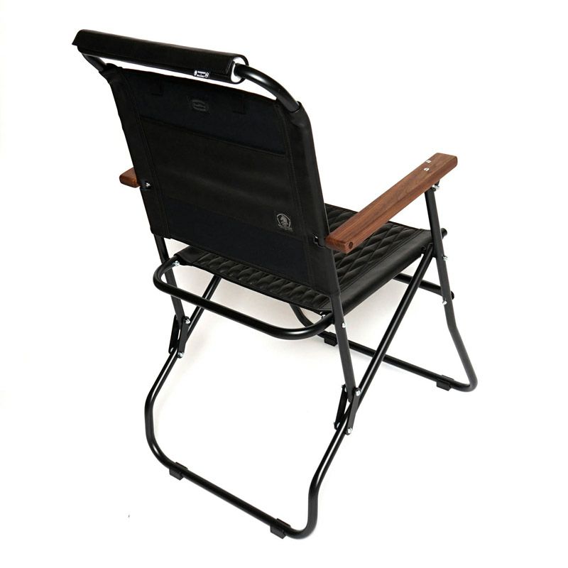 仕様 素材 シート:牛革 フレーム:アルミ アームレスト:ウォルナット カラー BKフレーム×BKシート サイズ 縦×横×奥行:約66×56×56cm (展開時) 縦×横×厚み:約67×20×16cm (収納時) 重さ:約3.5kg