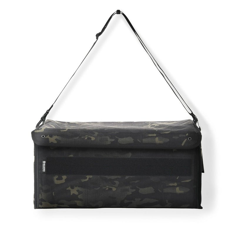 重ねた状態で両サイドのループにショルダーストラップを通し、最下段のDカンにナスカンを取り付けることで、