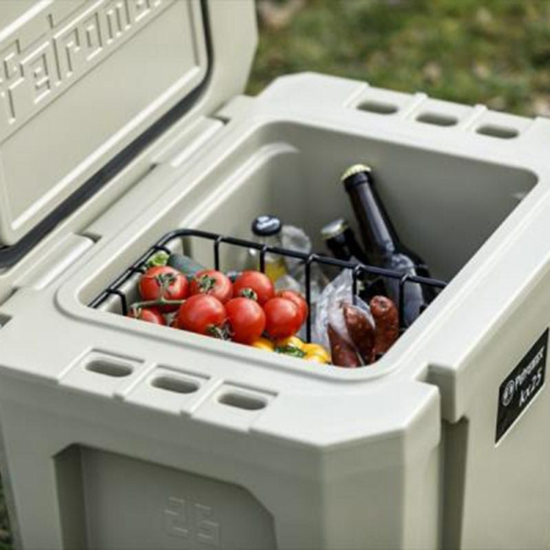 数日間の冒険に行く準備はできていますか!ウルトラパッシブクーラーがあれば、氷や保冷剤、ドライアイスのみで完璧な冷却システムが出来上がり、最大 12 日間内部を冷却することが可能。獲れたての魚やバーベキューのお肉、冷えたビールを運ぶのに最適です。 ●カラー/オリーブ・ベージュ・ホワイト ●サイズ/25L ●分厚い4cm以上の断熱壁を持った保冷力、耐久性抜群のクーラーボックスです。 ●蓋上部は頑丈で滑り止め付きで座るのにも最適。 ●蓋には車のキャリアや荷台に固定しやすいように上下左右の真ん中に溝が付いています。 ●ドレインホールは水抜きや洗浄時に便利です。使用中溶けた氷の水を排水することで保冷時間を若干伸ばすことができます。 ●濡れた手でも操作可能なゴム製開閉ラッチ。 ●強化ロックプレート付きで市販のUロックを使用すれば野生動物から食料を保護できます。●底には滑り止め用のゴムを装着。傾斜のある場所でも動きにくいように設計。 《保冷効果を最大限に発揮するために》 ・断熱壁は約4cm 以上の厚みがあり強力な断熱材が温度変化を最小限に抑えます。保冷効果を最大限にするために使用前にクーラーボックスを出来るだけ冷やしてからお使いください。 ・ 保冷剤として入れる氷はできるだけ乾燥したアイスがおすすめ。氷の表面はすぐに液状化してどんどん溶けていきます。クーラーパック等も効果的。中に入れる飲み物や食材もできるだけ冷えたものを入れるのがベスト。 ・ブロックアイスとアイスキューブを混ぜてできるだけ隙間なく冷やすのが効果的。 ・ドライアイスを使用することも可能。ドライアイスは氷に比べて半分の重さで 2 倍以上の保冷力があります。しかし、ドライアイスは溶けると二酸化炭素が発生するので風通しのよい場所で使用すること。使用においては必ず手袋をして中に入れる際は新聞紙や布で巻いて直接クーラーボックスに触れないようにする。 ・直射日光に当てない。