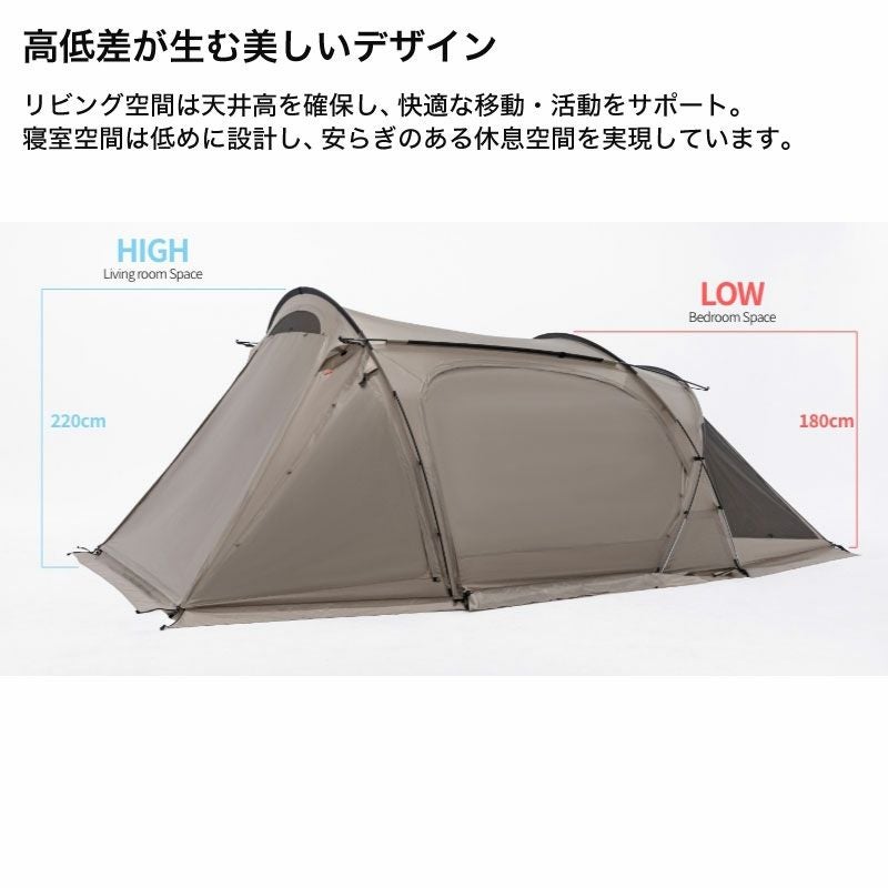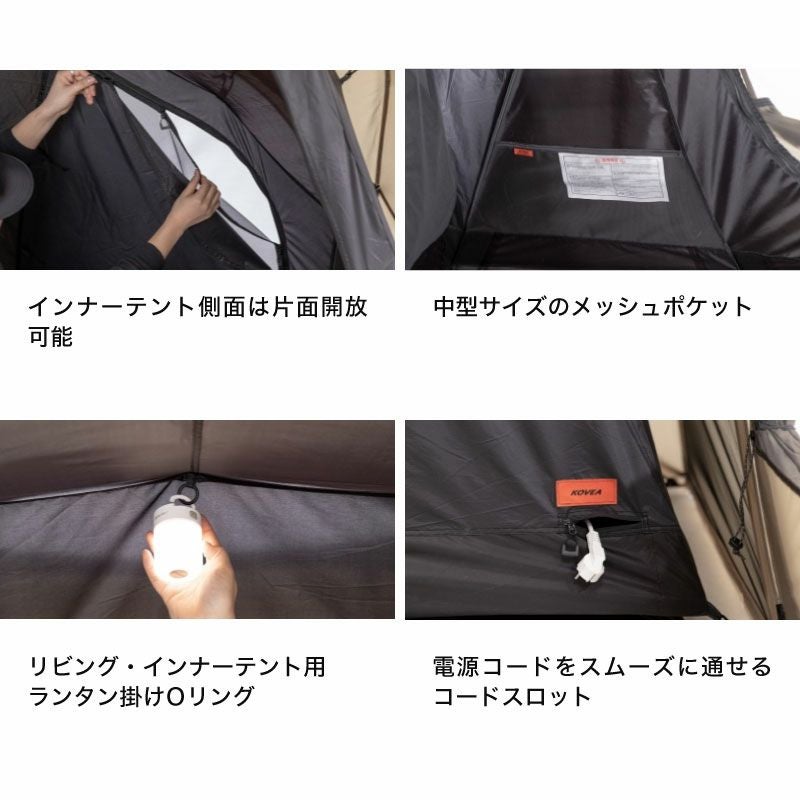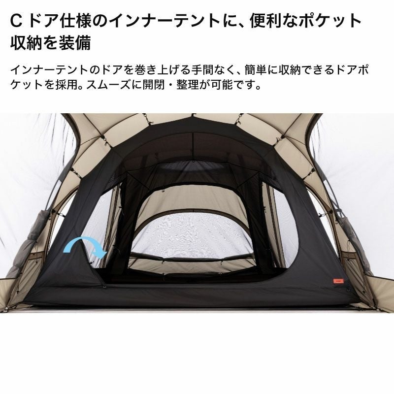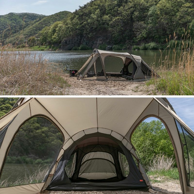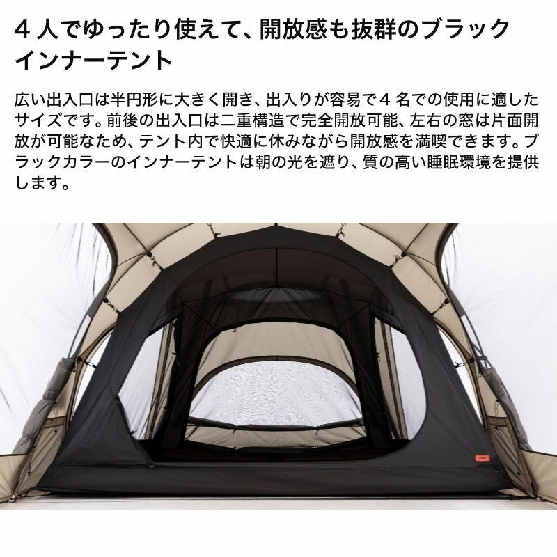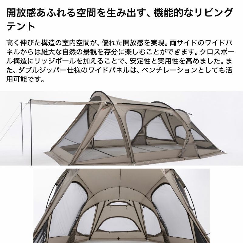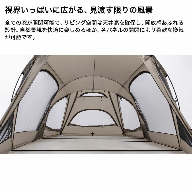 開放的で広いリビングスペースを備えたツールームテント。