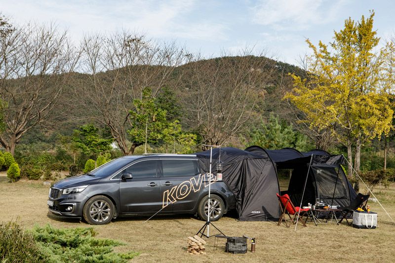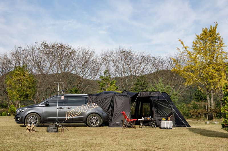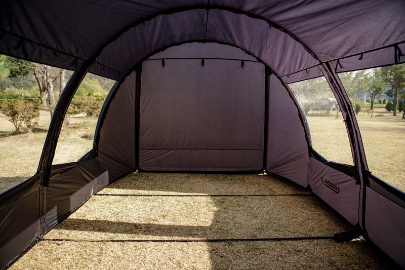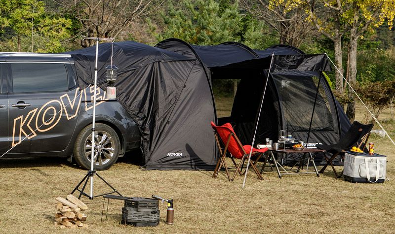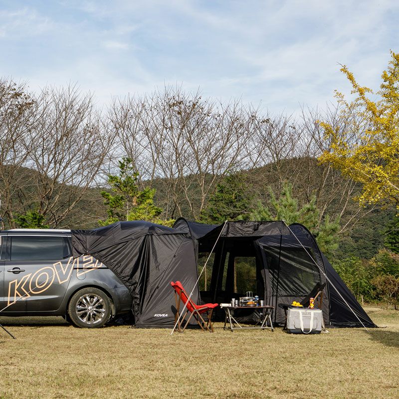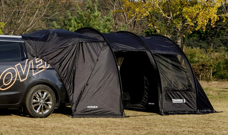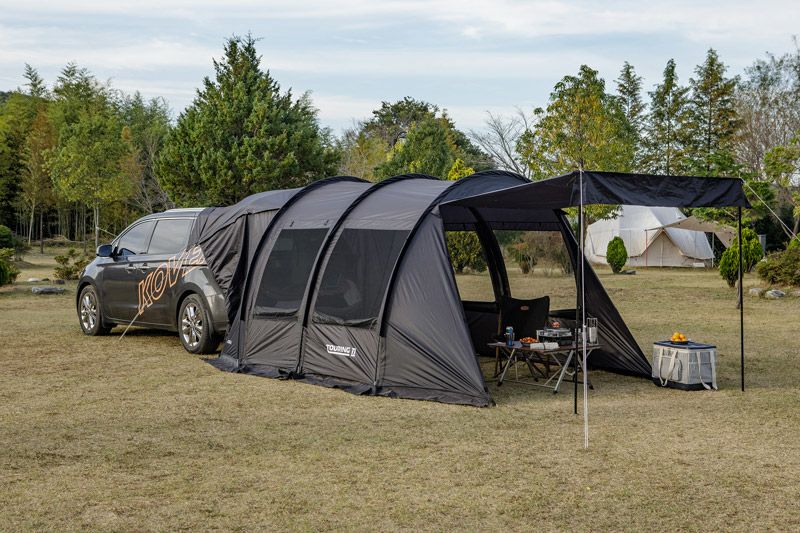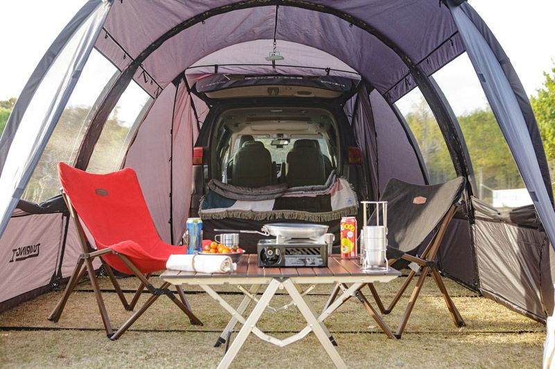 車と接続が可能なオシャレなトンネル型カーテント。取り外し可能なインナーテント付き。 車両と連結して、車内空間を荷物置きや寝室に有効活用できるテントです! インナーテントを付けずに後部を跳ね上げすれば広々リビングペースに、 インナーを付ければ寝室にと2役で利用でき機能的です。 単独でも設置可能で2ルームテントとしても使用できます! 開放感に優れた両サイドメッシュウィンドウで跳ね上げも可能です! シンプルなブラックでコーディネートの幅も広くオシャレです♪