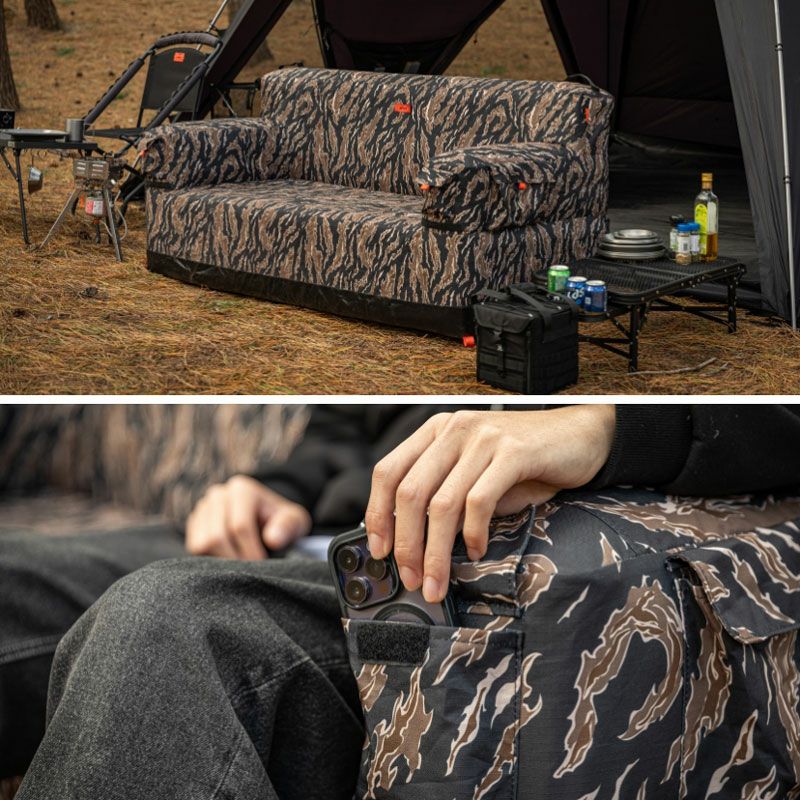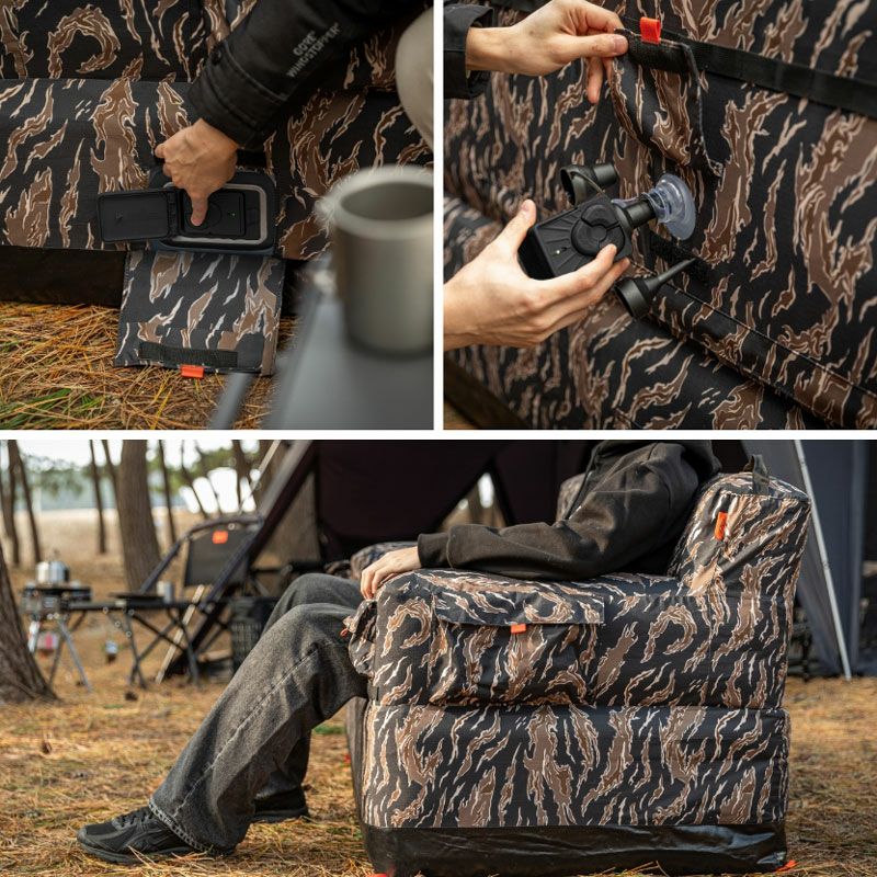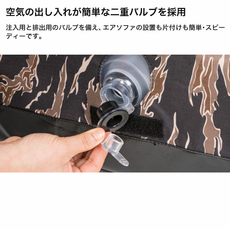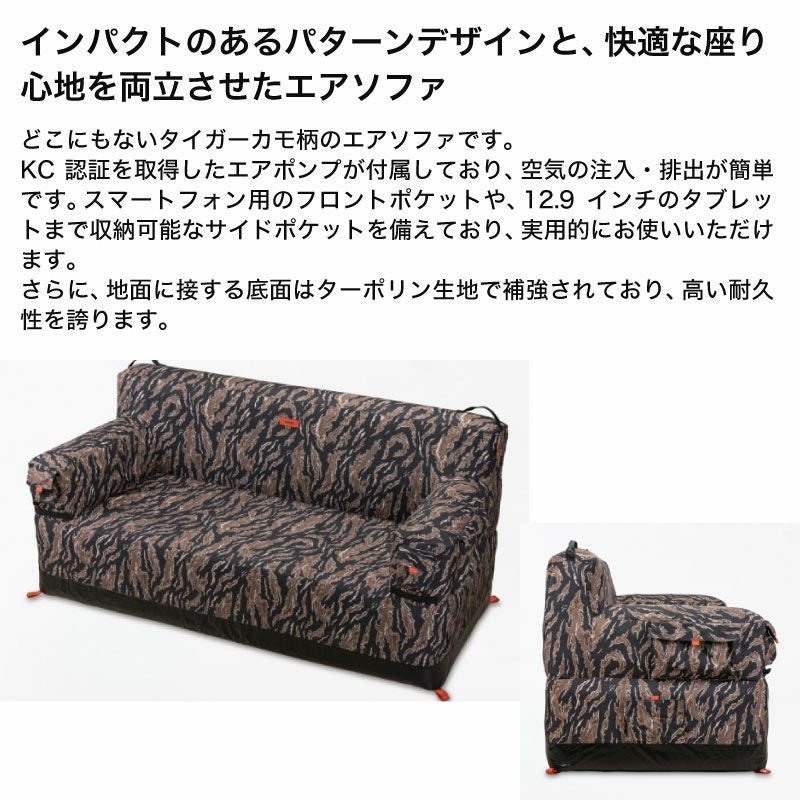 個性的なタイガーカモパターンに快適さを備えたエアソファです。