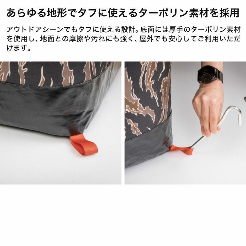 地面に接する部分はターポリン生地で補強し、高い耐久性を持っています。