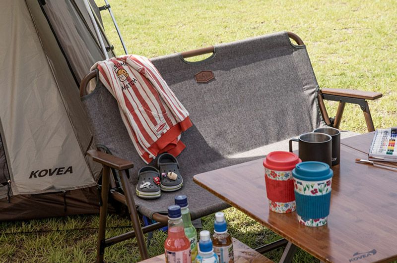 大人2人が座ってもゆったりとしたサイズで快適なファミリーベンチチェア! ワンアクションで簡単な設置・収納が可能! キャンプはもちろん屋内でも多用途に使えるチェア。