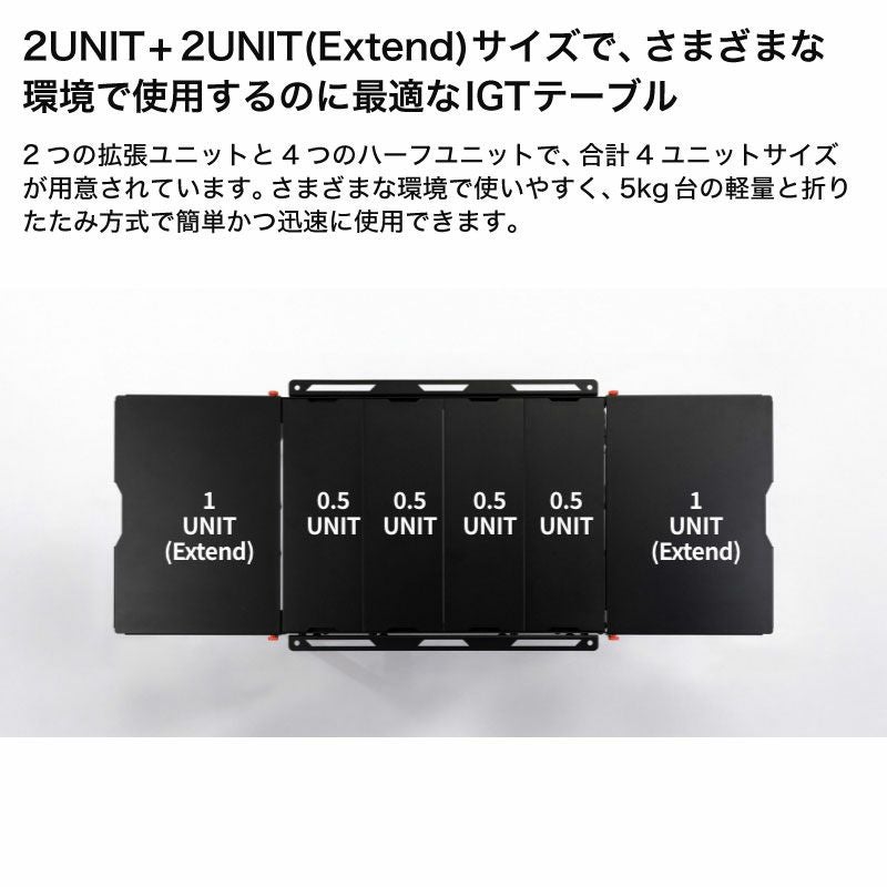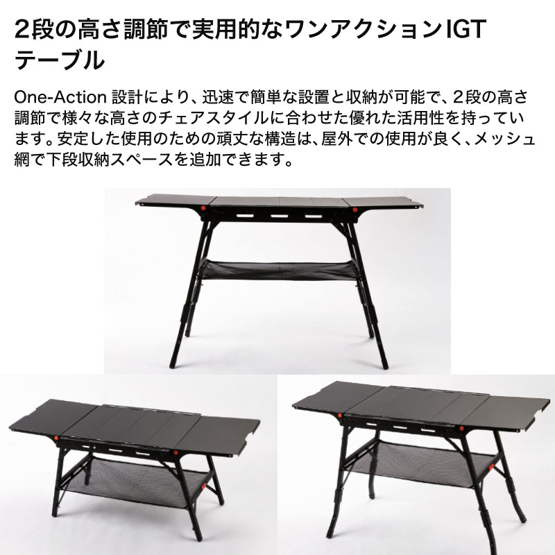 開くだけの簡単設置。2段高さ調整で機能的なIGTテーブル