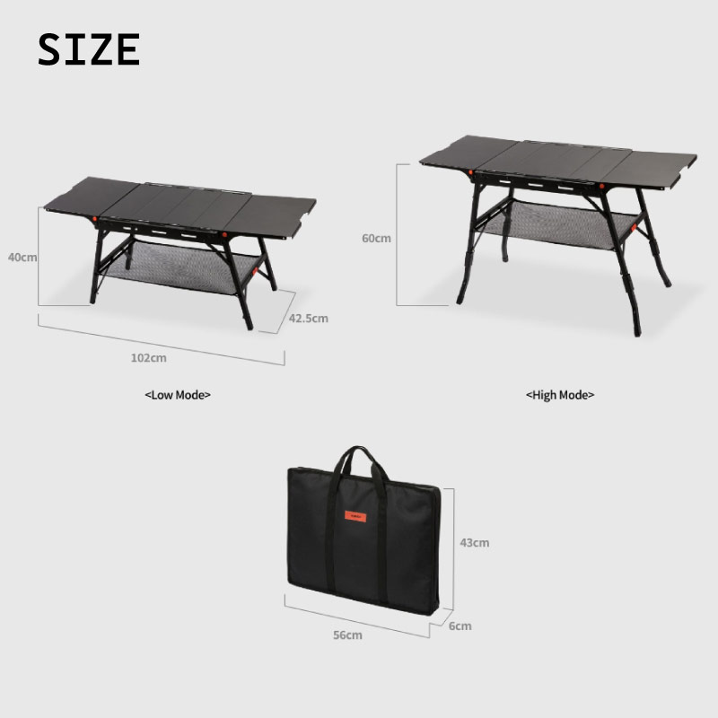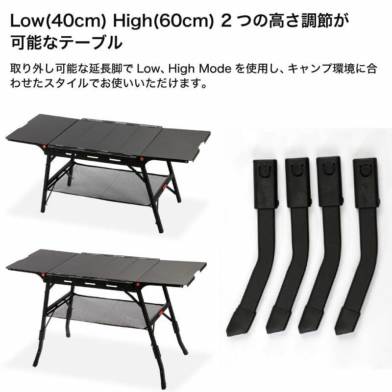 延長脚を使ってLow(40cm)、Hight(60cm)の高さでキャンプスタイルに合わせて使用できます。