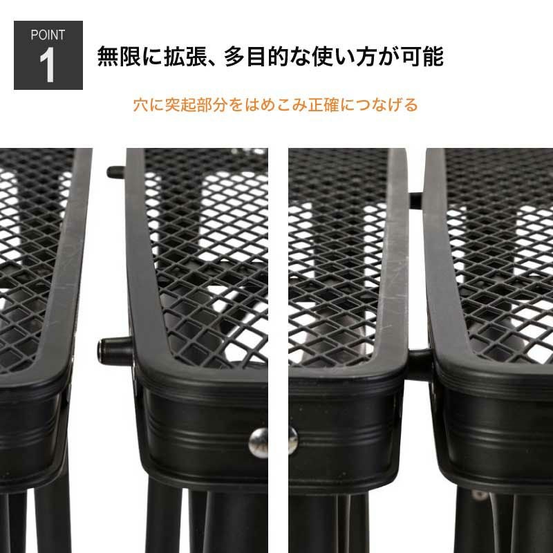キャンプ、ピクニックなど無限の拡張で多目的な使い方が可能な、アウトドア活動に適したテーブル