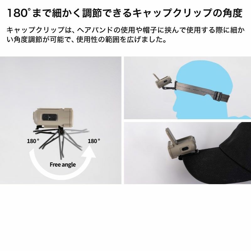 構成:本体、キャップクリップ、ヘアバンドクリップ、ヘアバンド、充電ケーブル、カラナビ、収納ケース