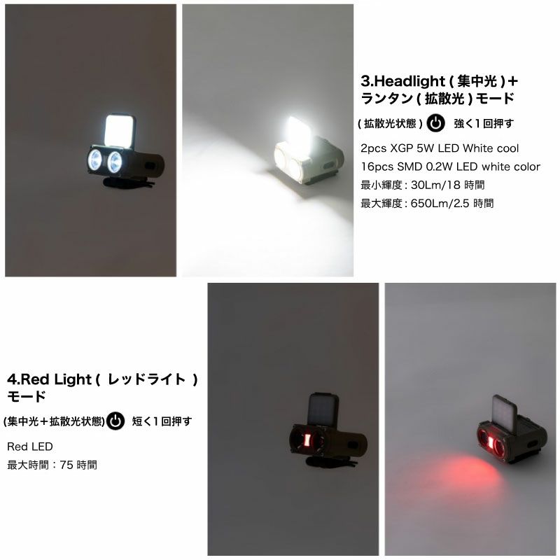 Cタイプの充電ポートで簡単に充電でき、3つのLED(ヘッドライト、ランタン、レッドライト)で最大650LMの明るさを提供します。