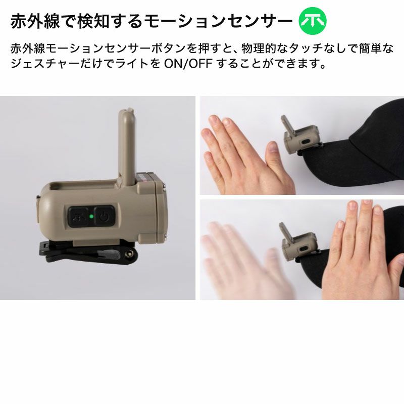 内蔵された赤外線モーションセンサーで手軽にオン/オフすることができ、状況に合わせて5段階ライトモードを選択でき、ヘッドランタン、キャップライト、インナーランタンなど多目的に活用できる生活防水が可能な実用的なランタンです。