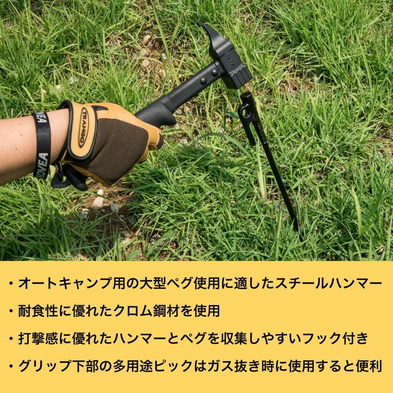オートキャンプ用の大型ペグ使用に適したスチールハンマーです。