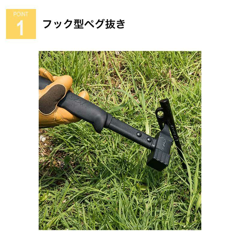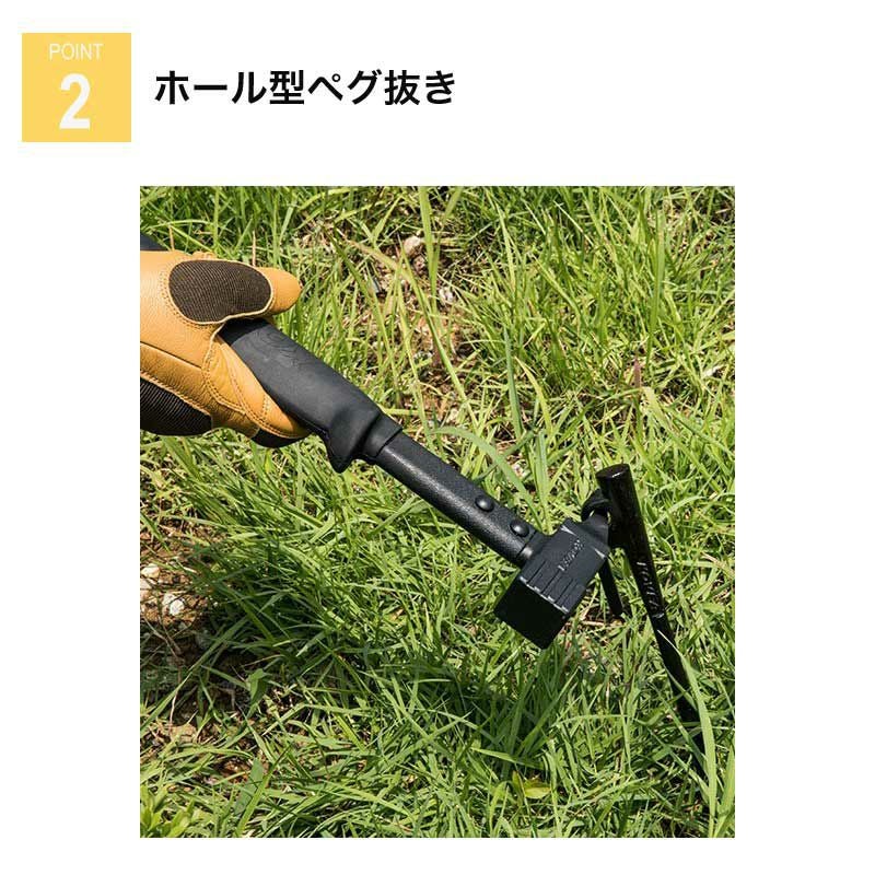 打撃感に優れたハンマーとペグを収集しやすいフック付き。