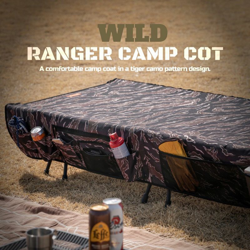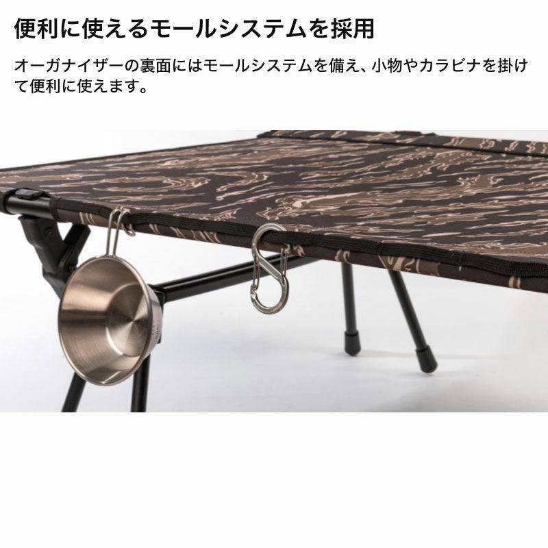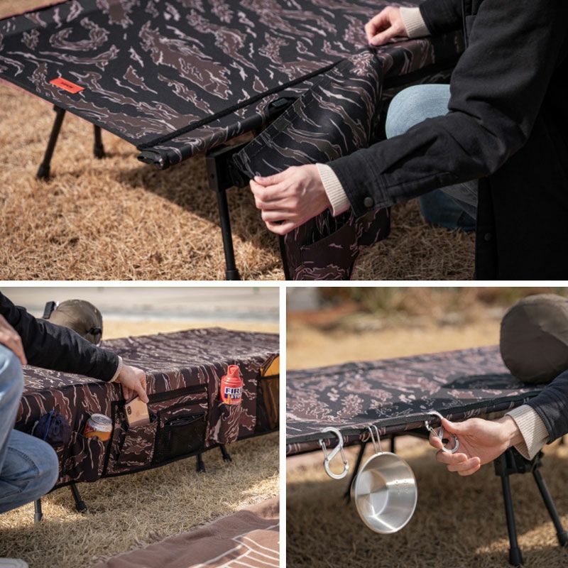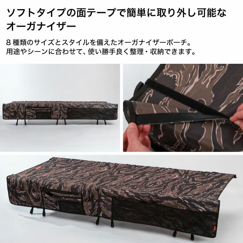 面テープタイプの着脱可能なオーガナイザーは、コット使用時に小物の保管・使用に便利です。