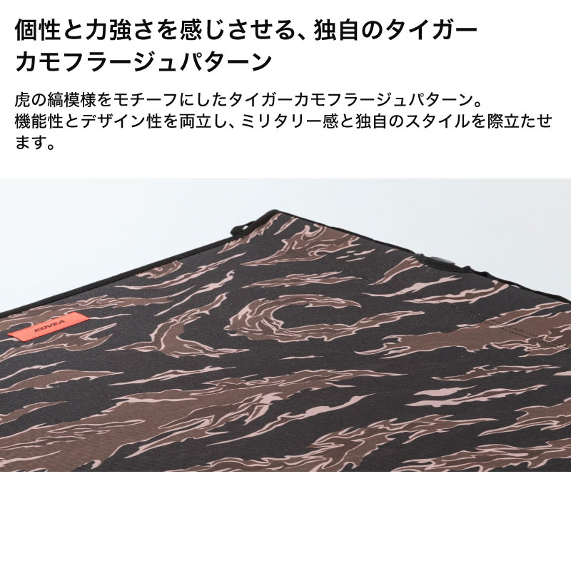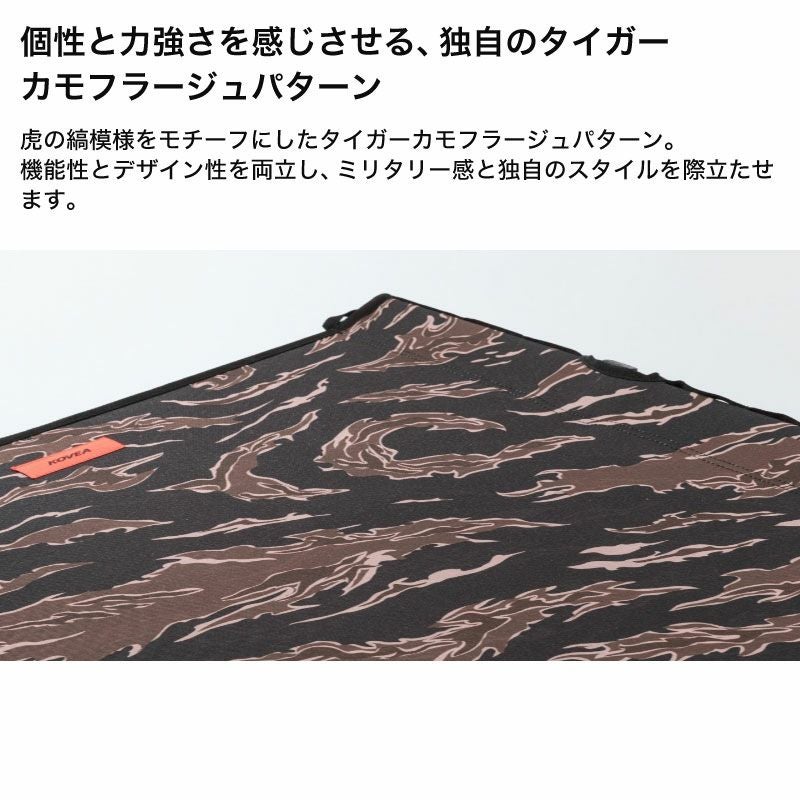 不規則なパターンと強めのコントラストが特徴で、一般的なカモ柄よりも立体感のある仕上がり。