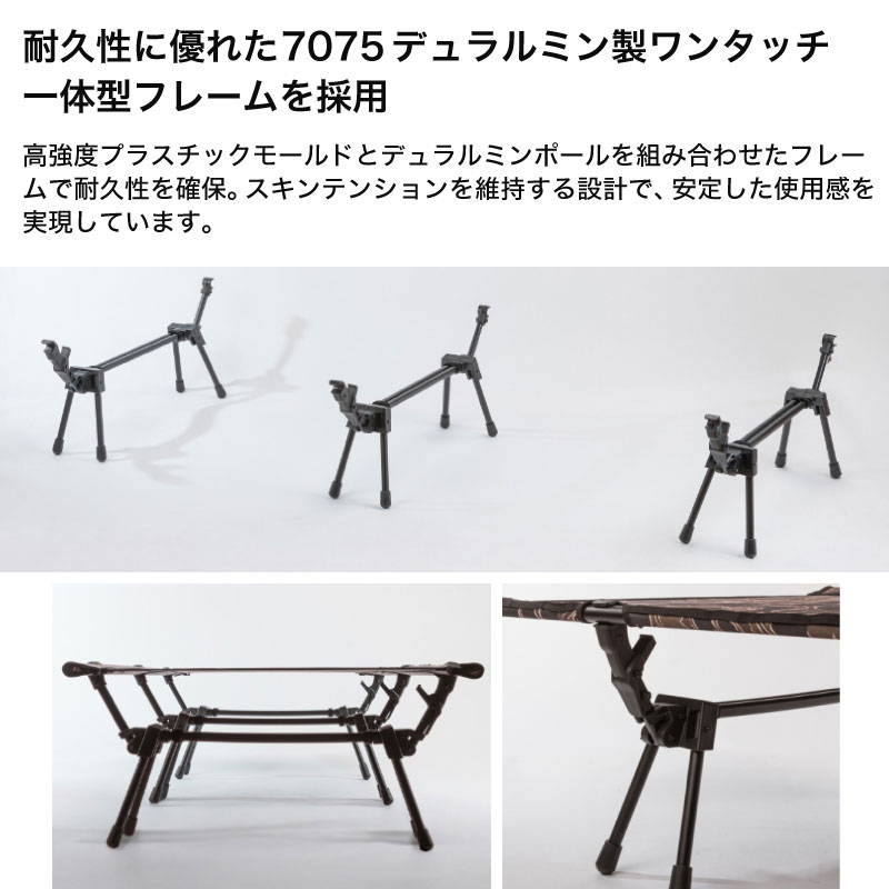 一体型フレームとフォールディング構造の延長レッグにより、状況に応じてスムーズな開閉が可能。