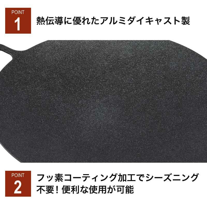 熱伝導に優れたアルミダイキャスト製で軽く、フッ素樹脂コーティングを施し、シーズニングなしで便利な使用が可能です。