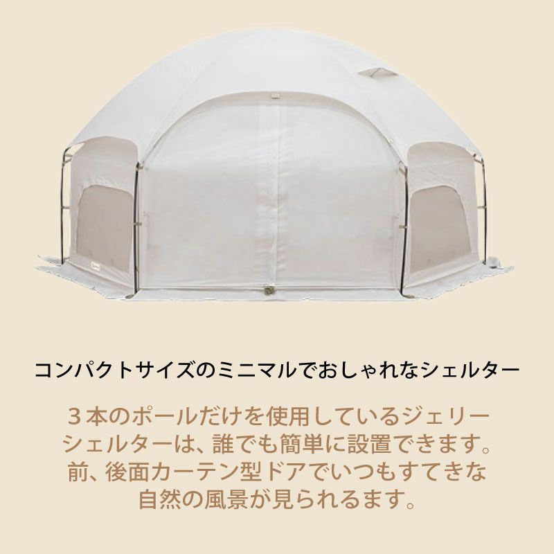 ドーム型の自立型ポール構造で耐久性と安全性に優れたシェルターです。