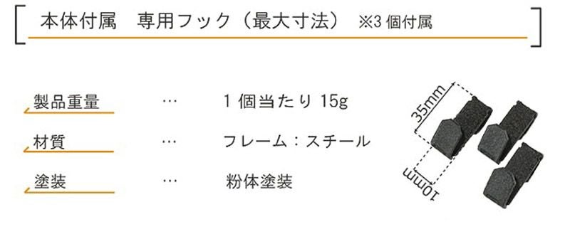 専用フックを3個、本体の付属品として用意しています。