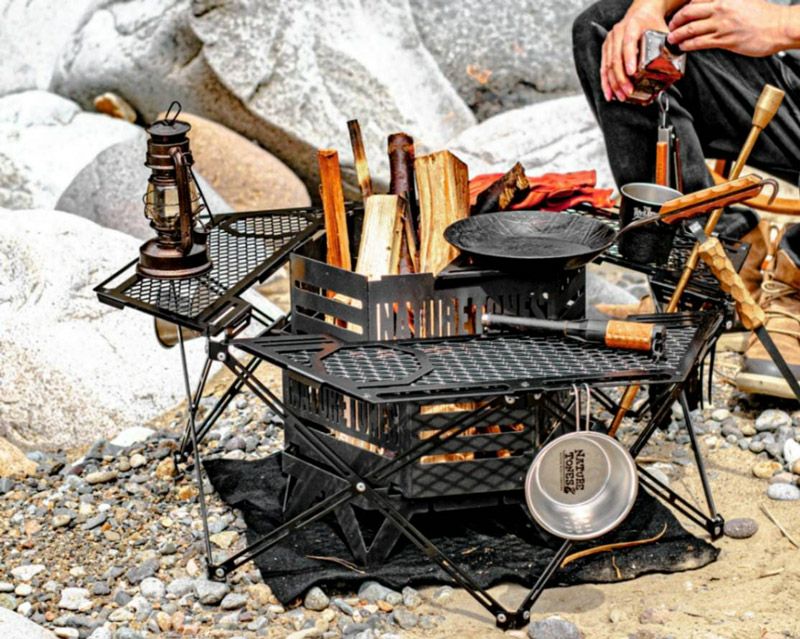 数人で一つの焚き火を囲みながら使える焚き火テーブルです。