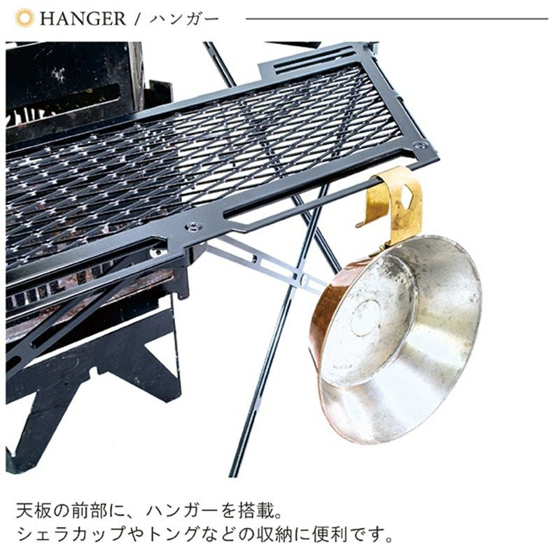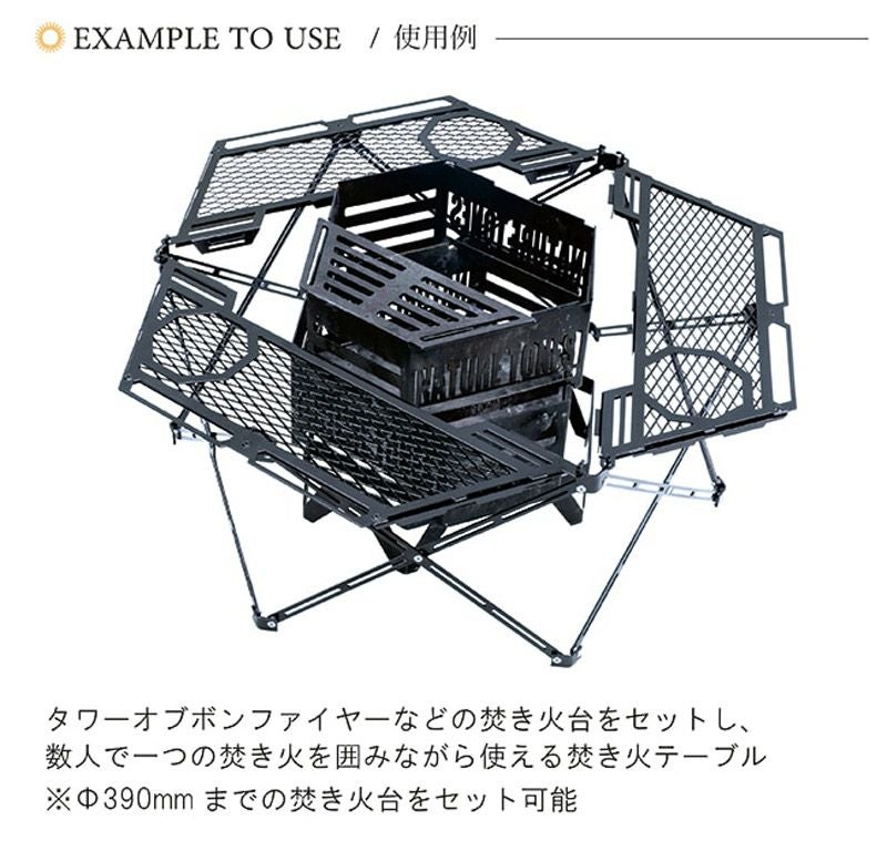 ※φ390mmまでの焚き火台をセット可能。