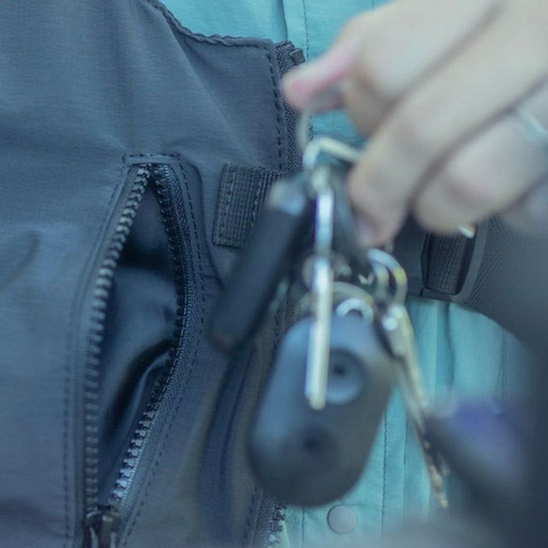 左胸にループを設けることにより、LEDライトやキーなどをハンギング可能にしました。