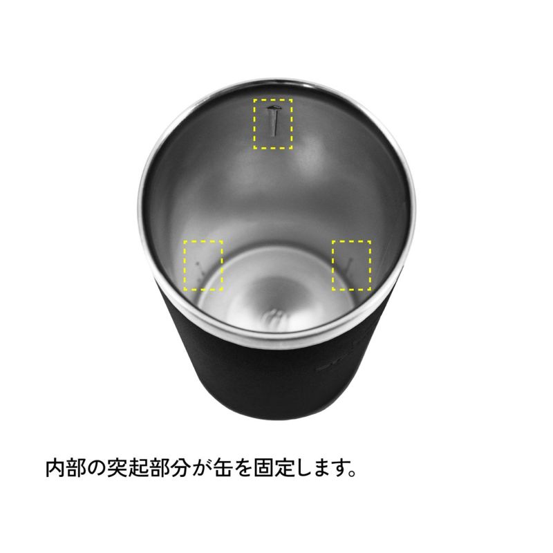 内部の突起部分が缶を固定し、逆さにしても缶が落ちません。
