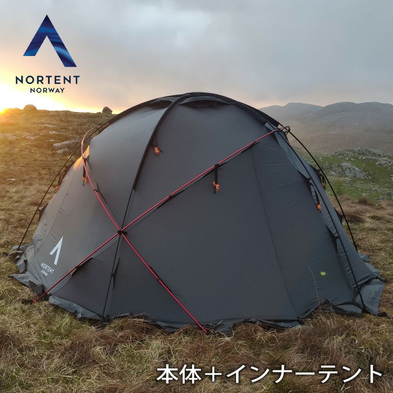 ノルテント ギャム6 ストーングレイ Arcticモデル本体と専用インナーテントのセットです。 NORTENT Gamme6は、薪ストーブをインストールできるようにデザインされ、5本のポールで構成される自立型ドームテントです。 直径370cm、高さ185cmの大きな居住面積を備えながら、重さは7.6kgと軽量で、5つのポールは7つの異なるポイントで交差されており、より負荷のかかる部分にはダイニーマを使用するなど、悪天候や大雪にも耐えることができ高い耐久性を誇ります。 テント内部の結露を防ぐため、6つの通気口が装備されています。 テント上部4つの通気口は湿った空気を外に逃がし、テント下部2つの通気口はストーブを使用する際に十分な酸素を取り入れ、空気の循環をスムーズにします。 フライシートは軽量さと、丈夫で強力なリップストップナイロンをコーティングした素材を使用しているので、100%の防水と密封性があります。 Gammeシリーズのインナーテントは最適な換気を確保するために、テントの前後両方に入口があります。 また独自のインナーテントデザインでテント内で薪ストーブを使用することができます。 インナーテントと薪ストーブを使用することで、気温の低い日でもテント内を快適にすることができます。 テント入り口は、高密度なナイロン生地と蚊帳があり、ジッパーで調節可能です。 寒い日は風や冷気をしっかりシャットダウンできます。 夏は蚊帳を使用することにより蚊や昆虫の侵入を防ぎ、涼しく快適に過ごせます。 インナーテントの天井には調整可能な「ハッチ」が装備されており、必要に応じて開閉することで結露を防ぐことができます。 【Gammeシリーズについて】 NORTENT Gammeシリーズは、バックパックをはじめとするアクティビティで使いやすい4シーズンテントです。 ストーブを中心にインストールできるよう設計されており、冬キャンプの際には暖かく快適で居心地の良い空間を提供してくれます。 ノルウェー・サーミ―族の伝統的な住居「Gamme」をイメージしたデザインで、5本のポールで構成される自立型ドームテントです。 冷たい風が吹き荒れる環境においても、テント内は20~30℃になるので、とても快適に過ごすことができます。 広々としたテント内は2つの入り口を持ち、空気の循環をスムーズに行えます。 ARCTIC SERIESは、年に数回のキャンプを楽しむ方向けのシリーズです。