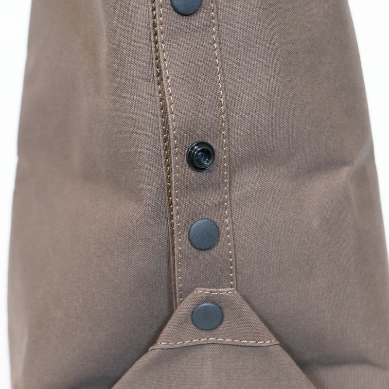 サイドのホックの留める位置を変えることで、マチ幅を2段階に調節できます。