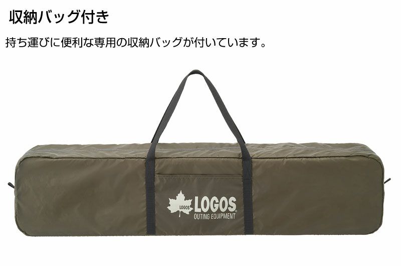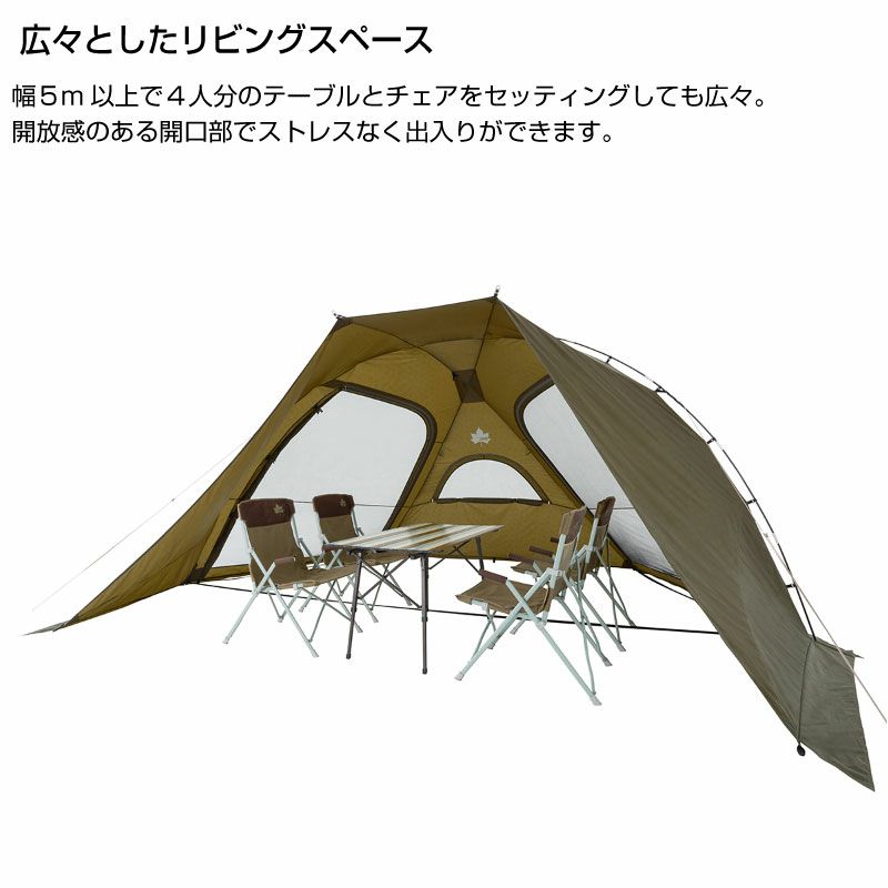 構成:本体、リッジフレーム、ロープ×4、収納バッグ、フレーム用収納袋、ペグ×17、ハンマー、小物袋