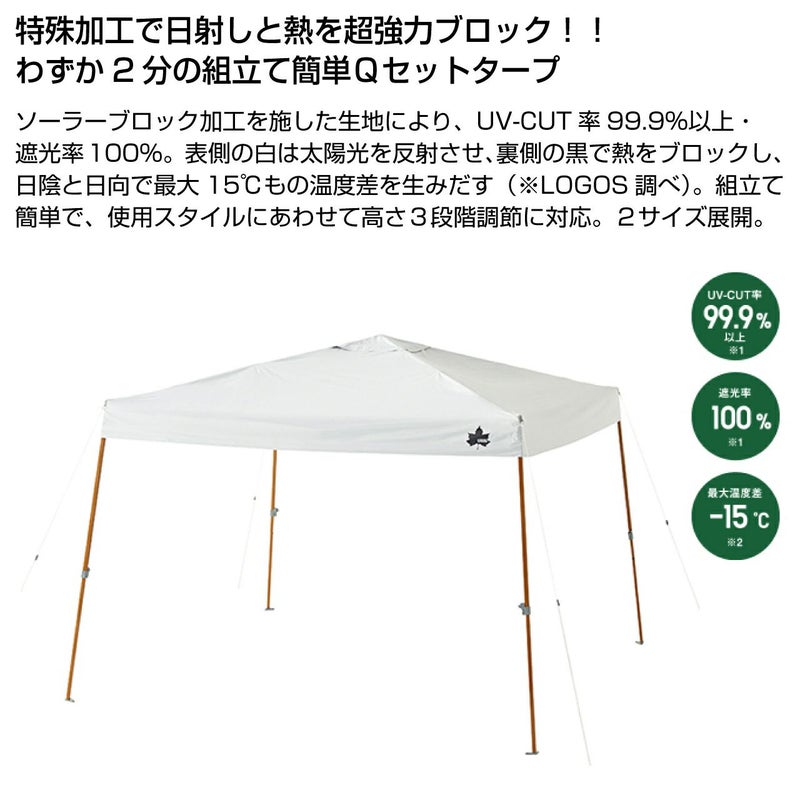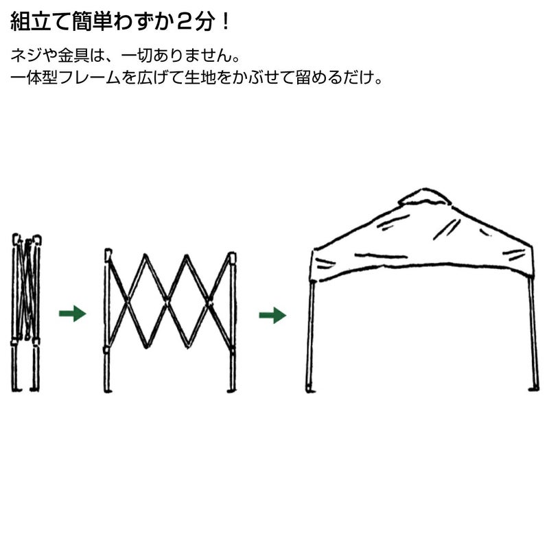 わずか2分の組立て簡単Qセットタープ。