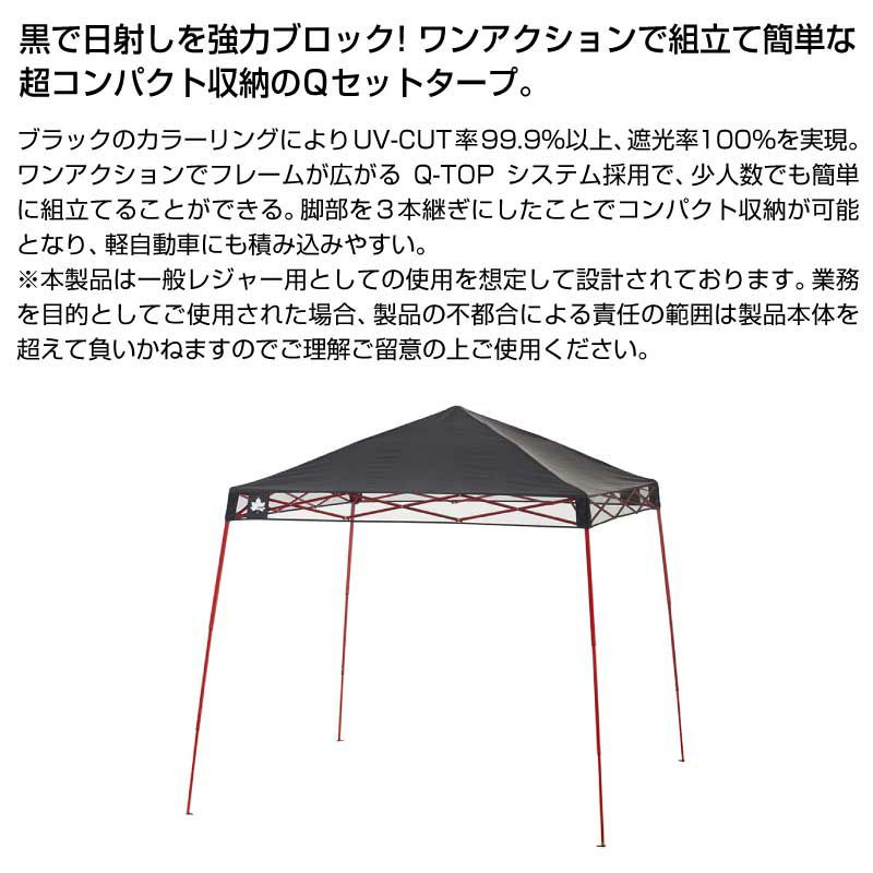 ワンアクションで組立て簡単な超コンパクト収納のQセットタープ。