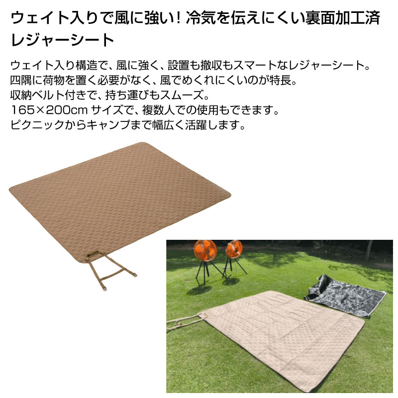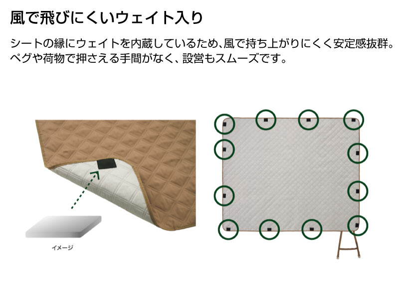 風でめくれにくいウェイト入り設計のレジャーシート。