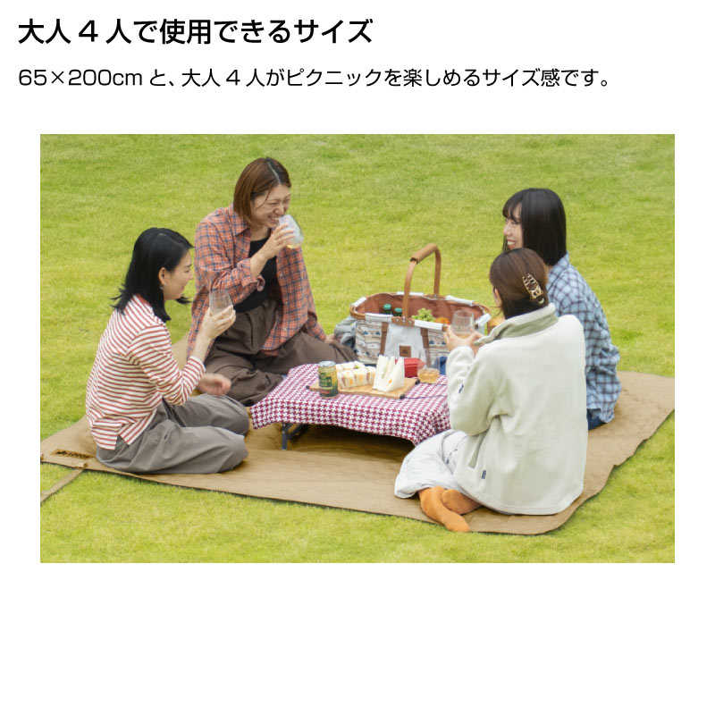 160×200cmの大判サイズで、ピクニックやキャンプでもゆったり使えます。