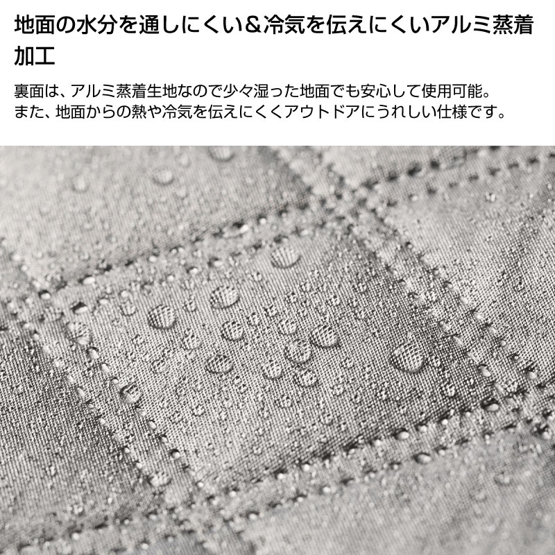 裏面はアルミ蒸着加工で、防水性があり地面の湿気や冷気を伝えにくい仕様です。
