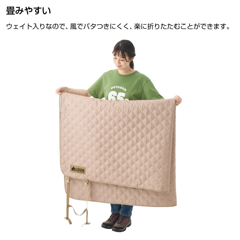 収納ベルト付きで持ち運びやすく、アウトドアやレジャーに便利な一枚です。