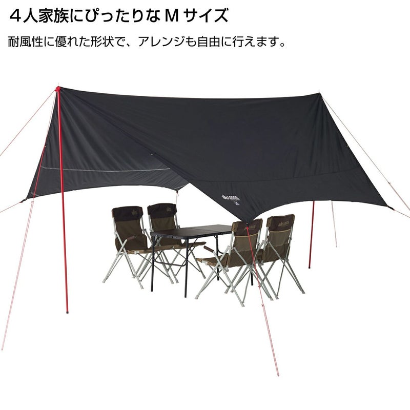 構 成:シート、ポール×2、ポール固定用ロープ×2、ロープ×4、収納バッグ、ポール用収納袋、ペグ×8、ハンマー、小物袋