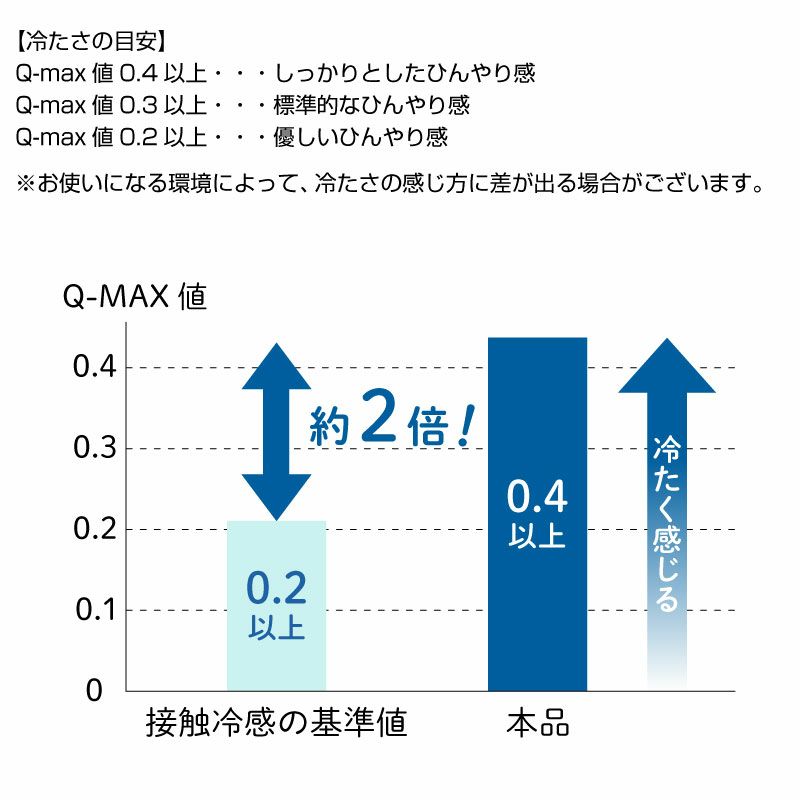 ひんやり感の指標Q-max値0.4以上のしっかりと冷たさを感じることのできる生地を採用。