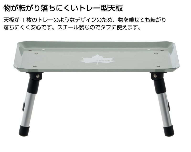 天板は丈夫なスチール製で、トレー型にデザインすることで小物が転がり落ちにくい構造となっています。