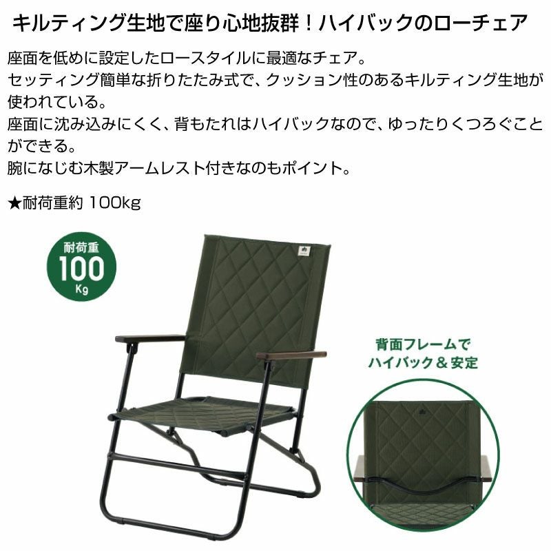 ハイバックのローチェア!座面を低めに設定したロースタイルに最適なチェア。