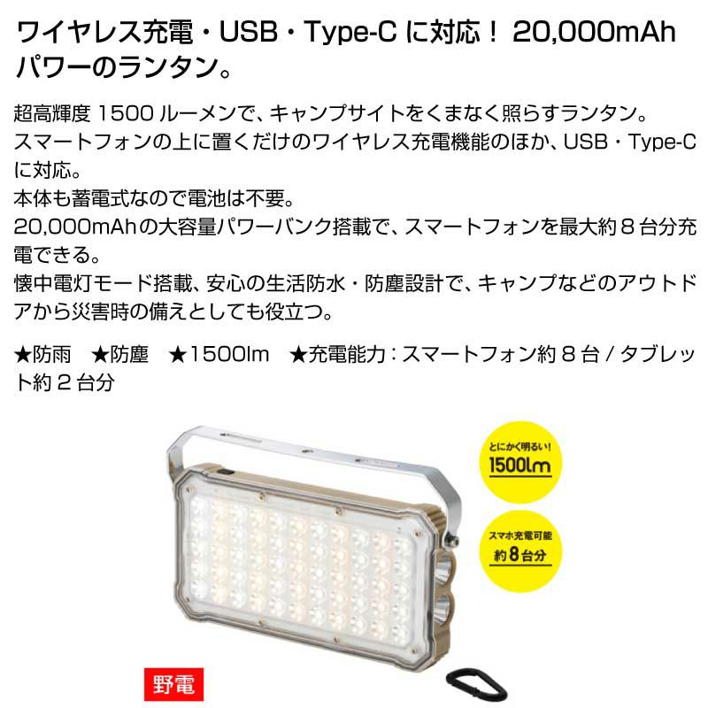 20000mAhのパワーバンク機能を兼ね備えた高輝度のランタン。