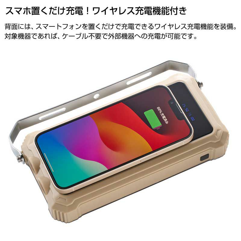 スマートフォンを置くだけで充電できるワイヤレス充電機能が備わっているため、USBコード不要で外部機器への充電が可能です。