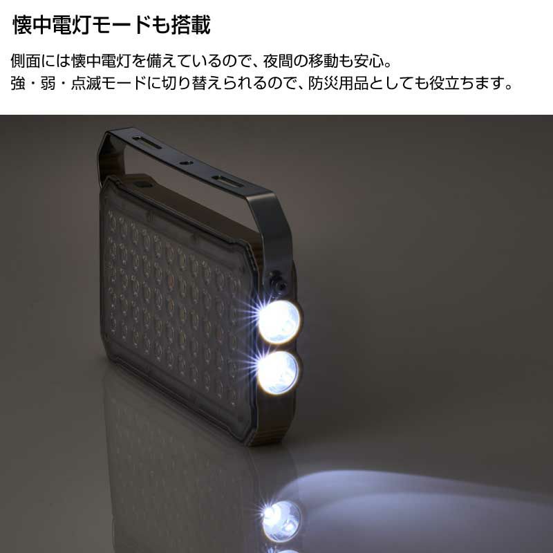 また逆側面には懐中電灯が備え付けられているため、夜間の移動も安心です。
