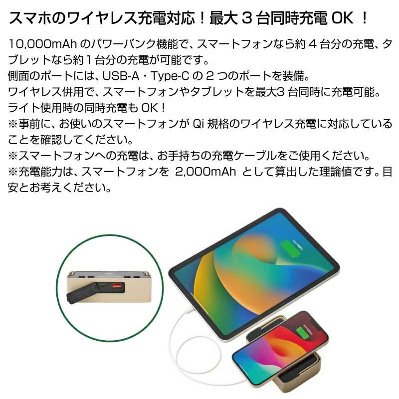 置くだけスマホ充電機能付き!サイト全体を明るく照らす超高輝度ランタン