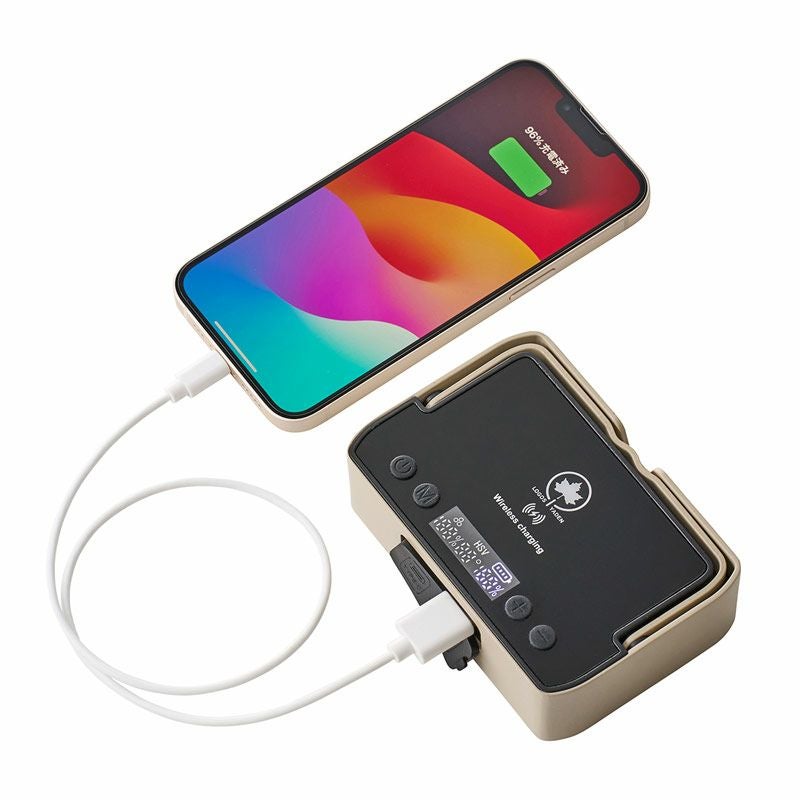 スマートフォンを置くだけで充電できるワイヤレス充電機能が備わっているため、USBコード不要で外部機器への充電が可能です。