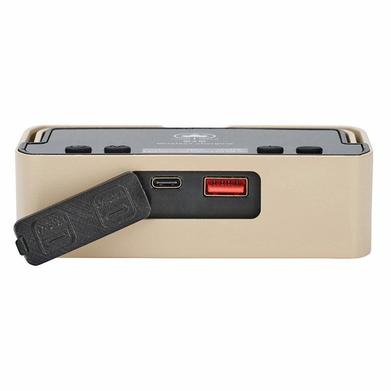 スマートフォンやタブレットを同時に充電することが可能。側面にUSBポートが2口(USB TypeC、USB-A)ございます。