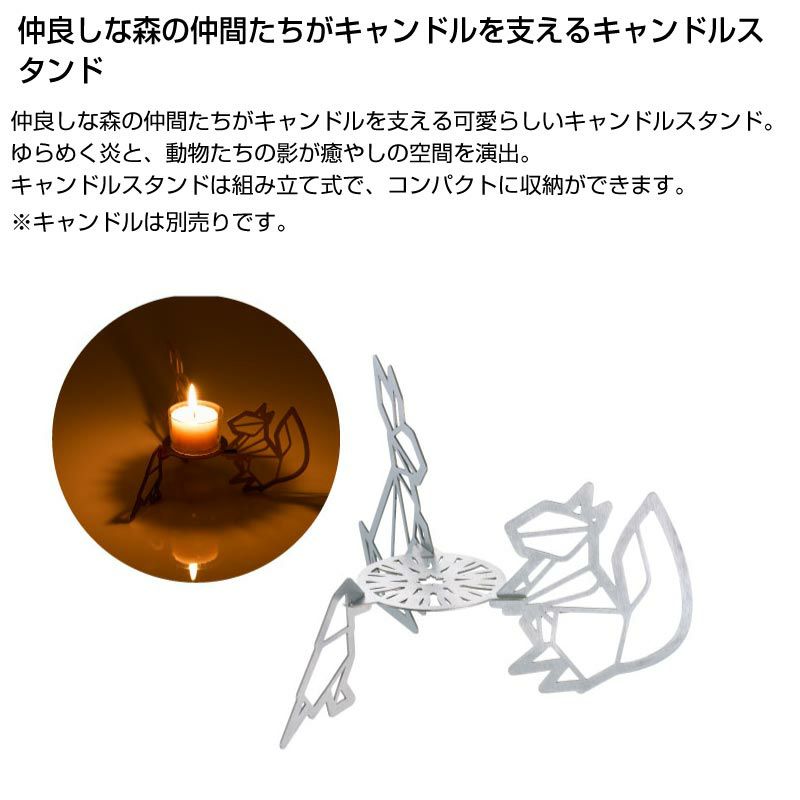 仲良しな森の仲間たちがキャンドルを支えてくれる可愛らしいキャンドルスタンド。