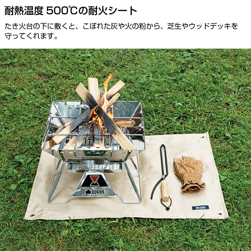 ※本製品はロゴスピラミッドグリルなど熱源から地面まで十分な距離のある「焚き火台」の