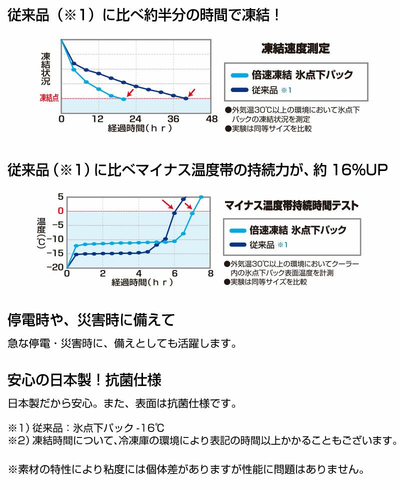 従来の氷点下パック-16℃の約半分の時間で凍結完了!