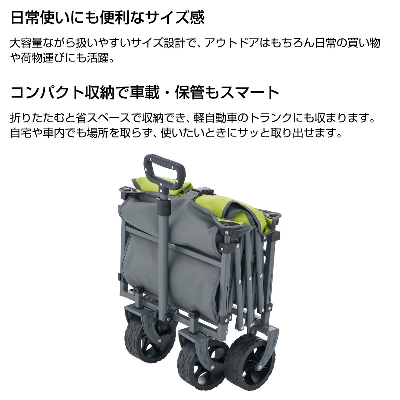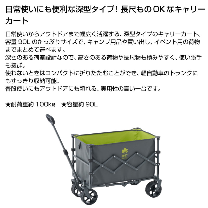 キャンプやアウトドア、買い出しに便利な深型タイプの折りたたみキャリーカート。